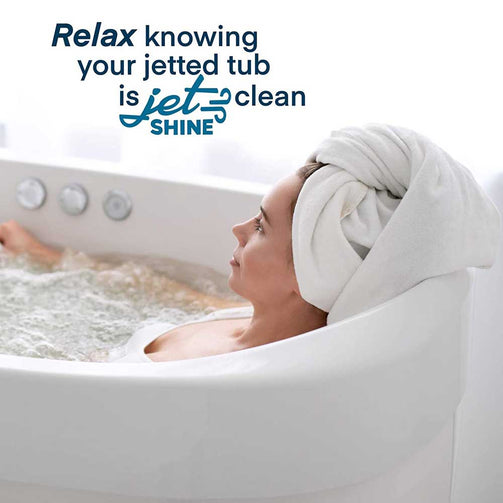 - THE LEADING JETTED TUB CLEANER – JetShine’s jet tub, whirlpool tub and jacuzzi tub cleaner removes soap scum build-up, odors, bath and body oils, black flakes, and other dirty contaminants from your jet tub system so your family can enjoy a safe, clean bath experience!